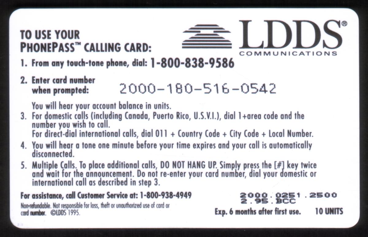 Since we have the world's largest inventory of USA phonecards for collectors, you will not necessarily receive the identical serial/batch/PIN number that we have scanned/pictured.