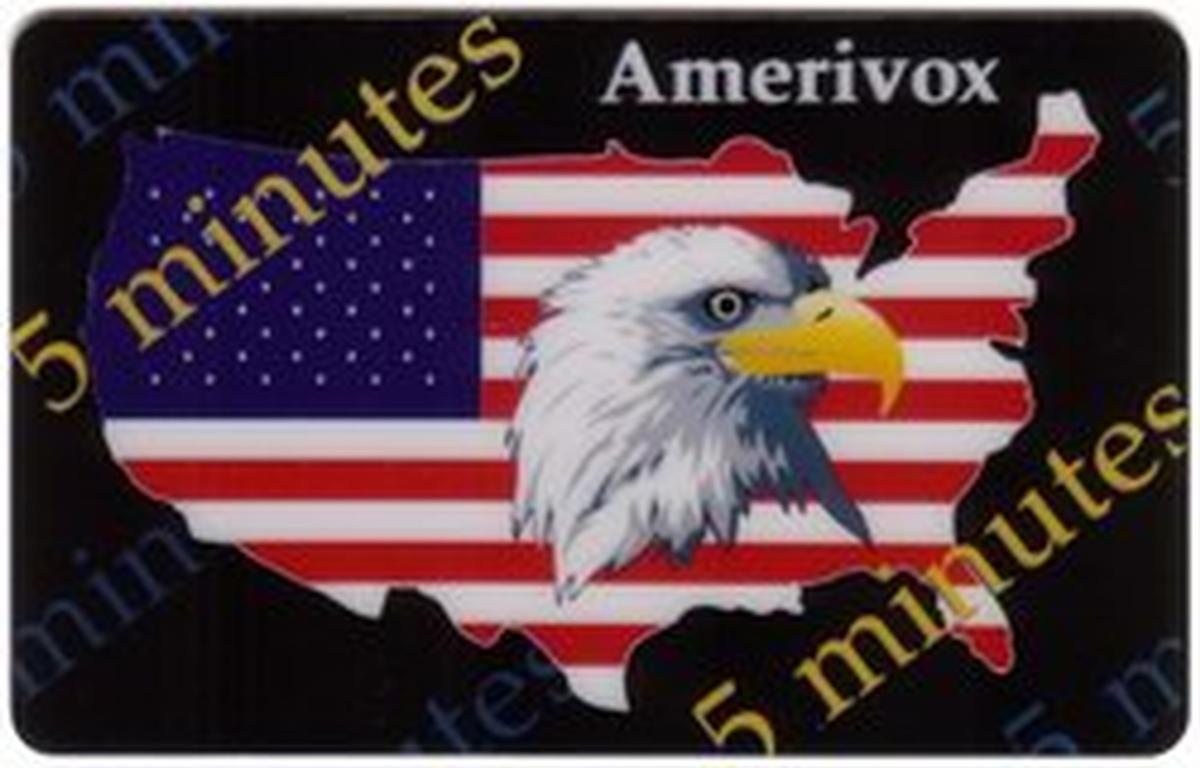 The upper portion of the card includes the text "5m" denoting the card’s value. Along the lower edge, the words "Eagle On United States Map With USA Flag Colors PROOF" appear, identifying the theme and design. The card also bears the name "AmeriVox," which is the issuer connected with this promotional collectible. The design evokes strong Americana themes, emphasizing the eagle as a symbol of strength and freedom alongside the American flag colors and map.