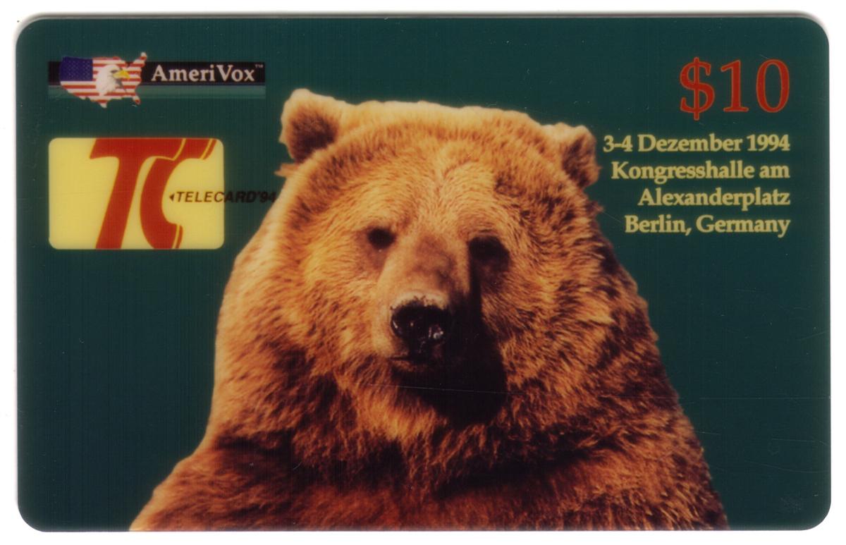 The telecard commemorates the wildlife and nature focus of the 1994 expos and shows held at Kongresshalle am Alexanderplatz in Berlin, Germany. This card is part of the telecard events celebrating animals, specifically grizzly bears, and serves as a collectible piece tied to that event.