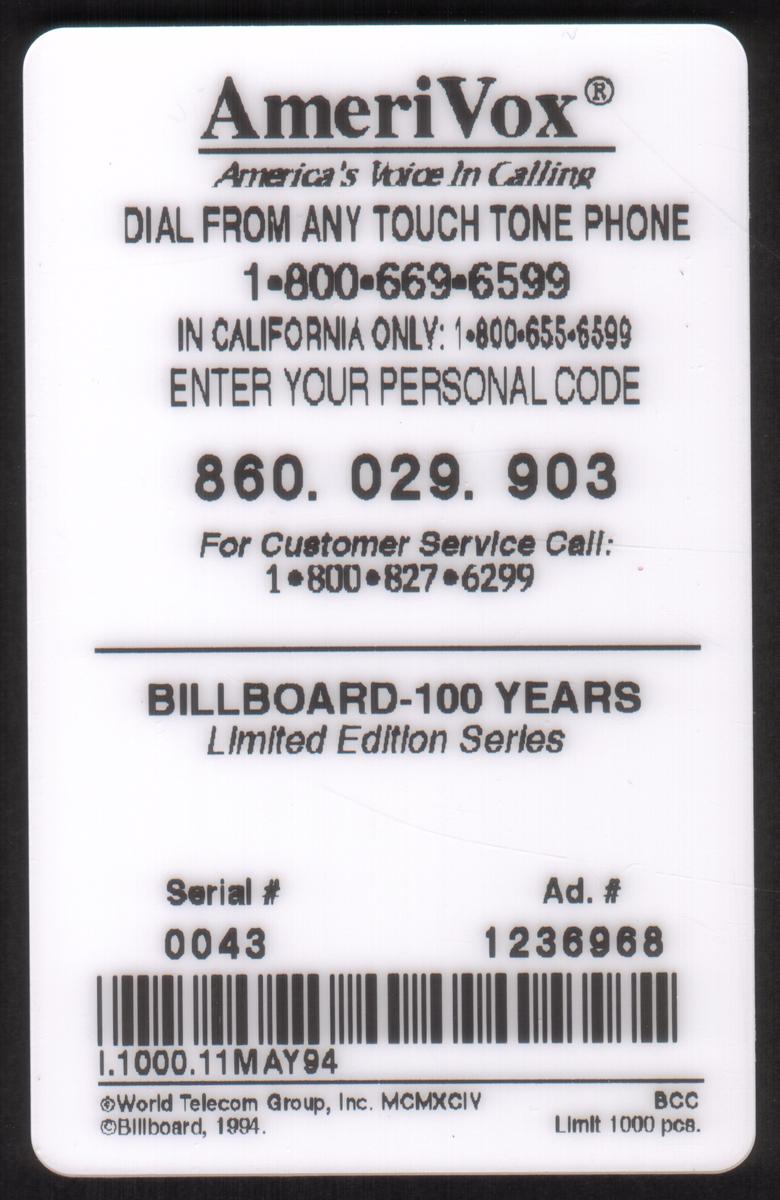 Since we have the world's largest inventory of USA phonecards for collectors, you will not necessarily receive the identical serial/batch/PIN number that we have scanned/pictured.