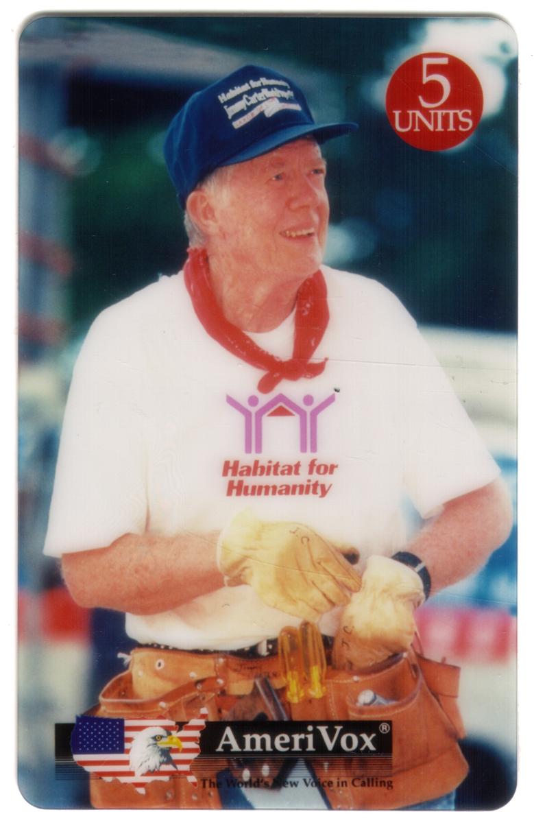 This item is issued by AmeriVox and references “5u President Jimmy Carter w/ Tool Belt,” which directly associates it with the American political and humanitarian themes. The design combines photographic realism with informative textual details, making it a collectible that honors Jimmy Carter’s legacy in political service and humanitarian work.