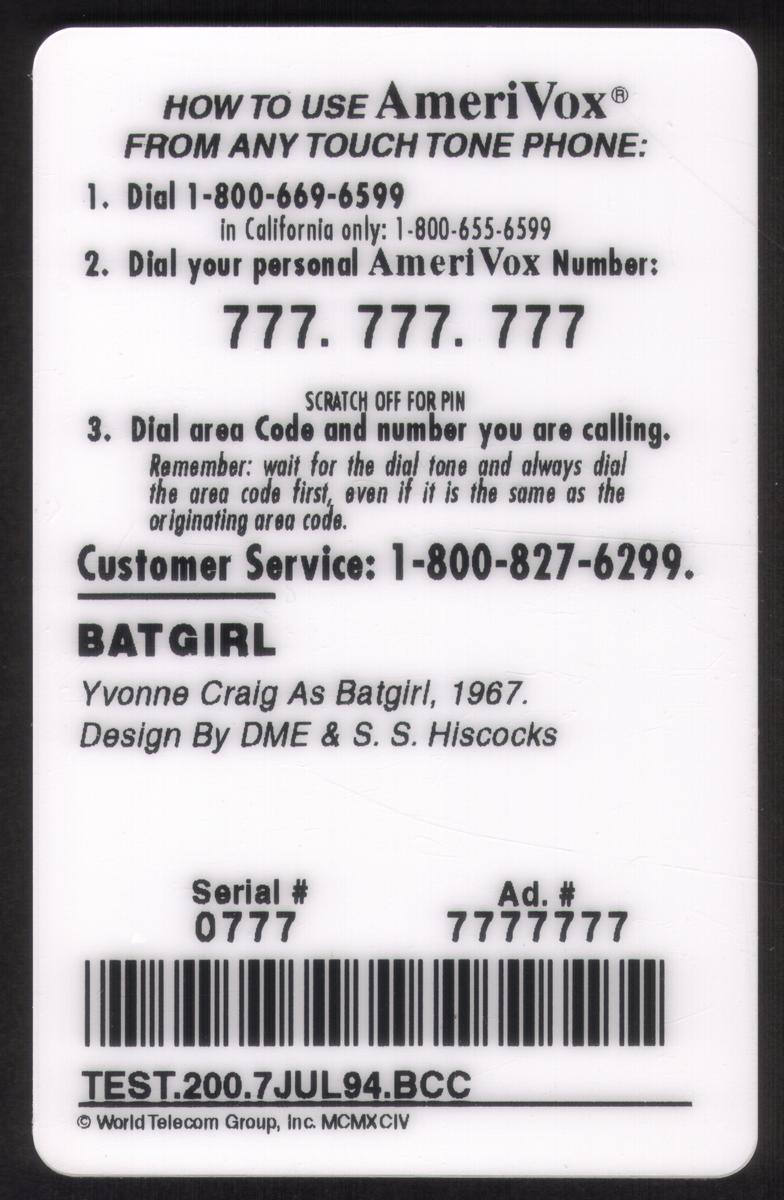 Since we have the world's largest inventory of USA phonecards for collectors, you will not necessarily receive the identical serial/batch/PIN number that we have scanned/pictured.