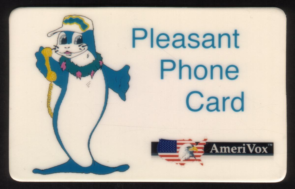 This phone card combines marine imagery with telephone-related elements to create an artistic and promotional design representing AmeriVox's Pleasant Phone Card issued in June 1993. The imagery highlights the theme of telephones through the corded handset while emphasizing a whimsical marine seal character.
