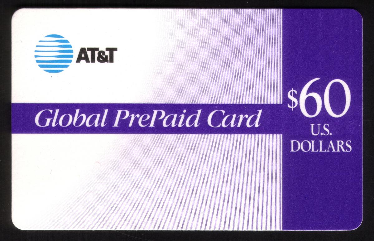 No additional names or characters are visible on the card. The card’s layout focuses on functional branding elements, specifically the AT&T identity and the prepaid card value, making it recognizable as a collectible specimen of a $60 Global PrePaid Phone Card.