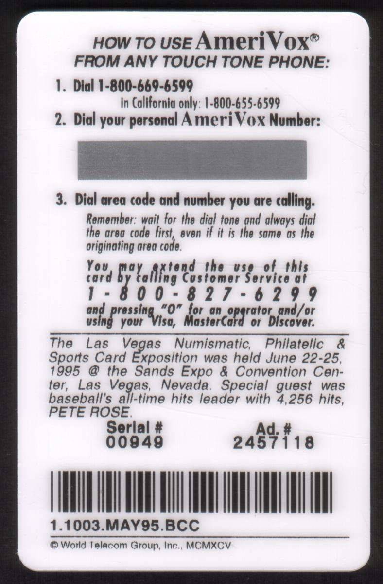 Since we have the world's largest inventory of USA phonecards for collectors, you will not necessarily receive the identical serial/batch/PIN number that we have scanned/pictured.