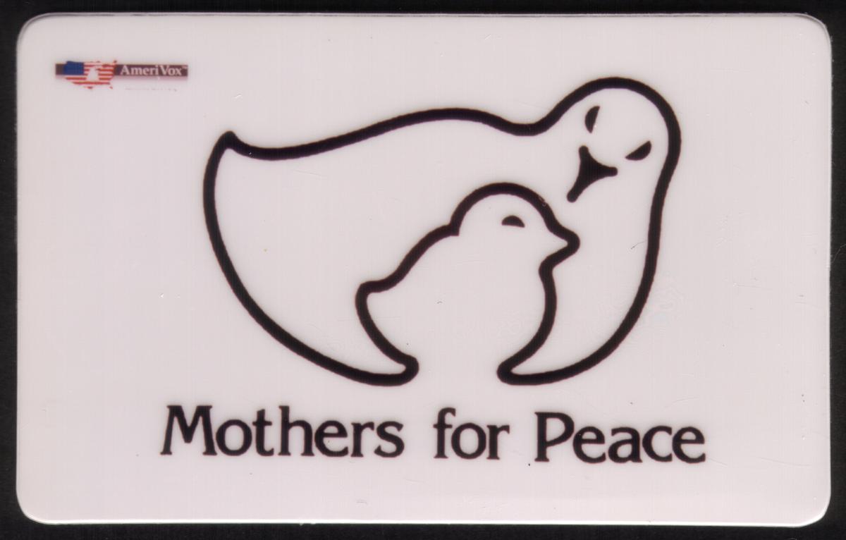 The card was issued in 1993 as a specimen by AmeriVox. It measures CC size and serves as a collectible item representing the efforts and mission of Mothers For Peace in promoting nuclear safety and social causes.