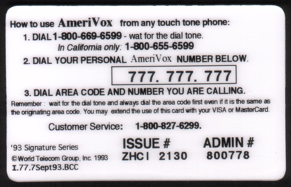 Since we have the world's largest inventory of USA phonecards for collectors, you will not necessarily receive the identical serial/batch/PIN number that we have scanned/pictured.
