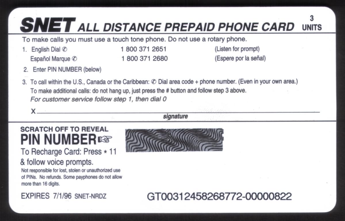 Since we have the world's largest inventory of USA phonecards for collectors, you will not necessarily receive the identical serial/batch/PIN number that we have scanned/pictured.