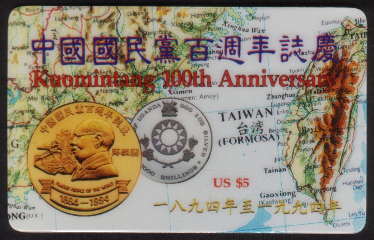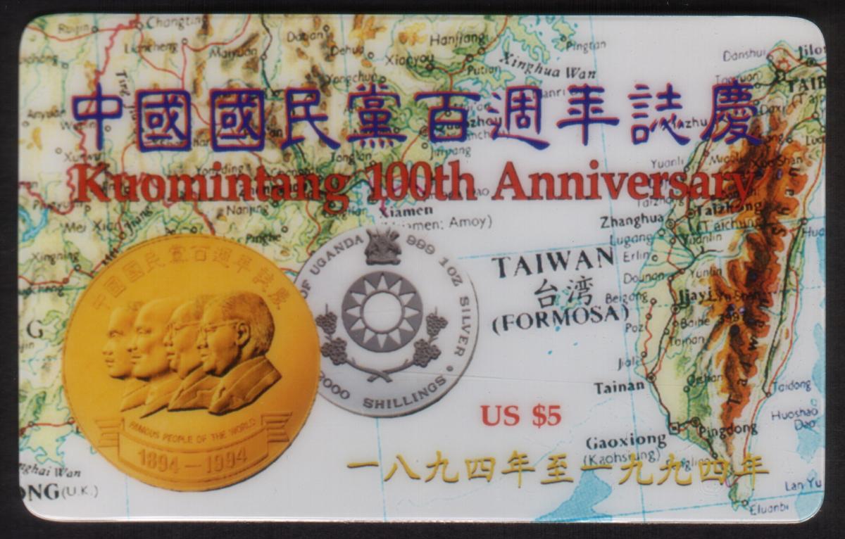This phone card is one of a set of five issued to celebrate the 100th anniversary of Taiwan/Formosa and the Kuomintang. It honors important politicians and political leaders associated with this historical milestone. The card is issued by USACard Corporation.