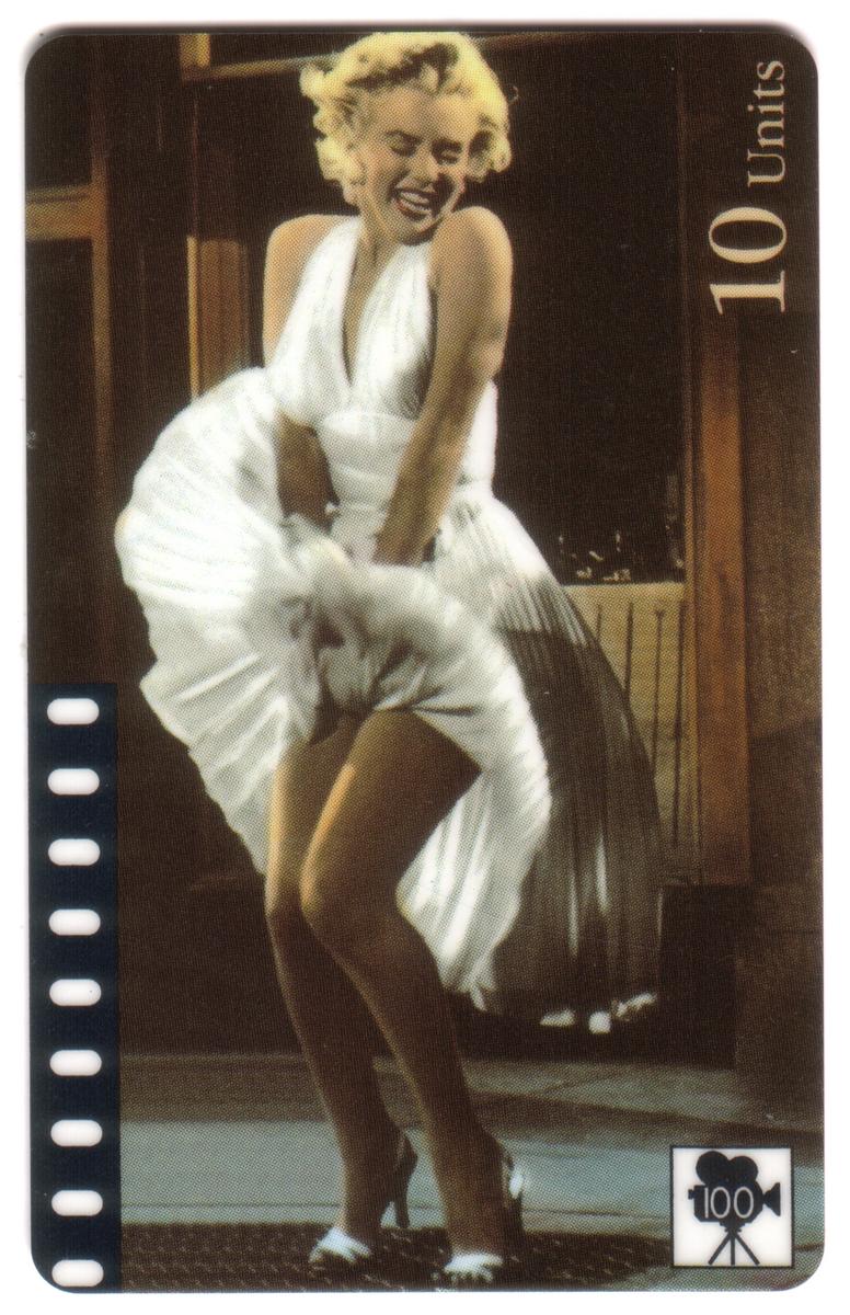 Marilyn Monroe in The Seven Year Itch scene, capturing her iconic pose with platinum curls, vintage film accents, and 10-unit phone credit. |