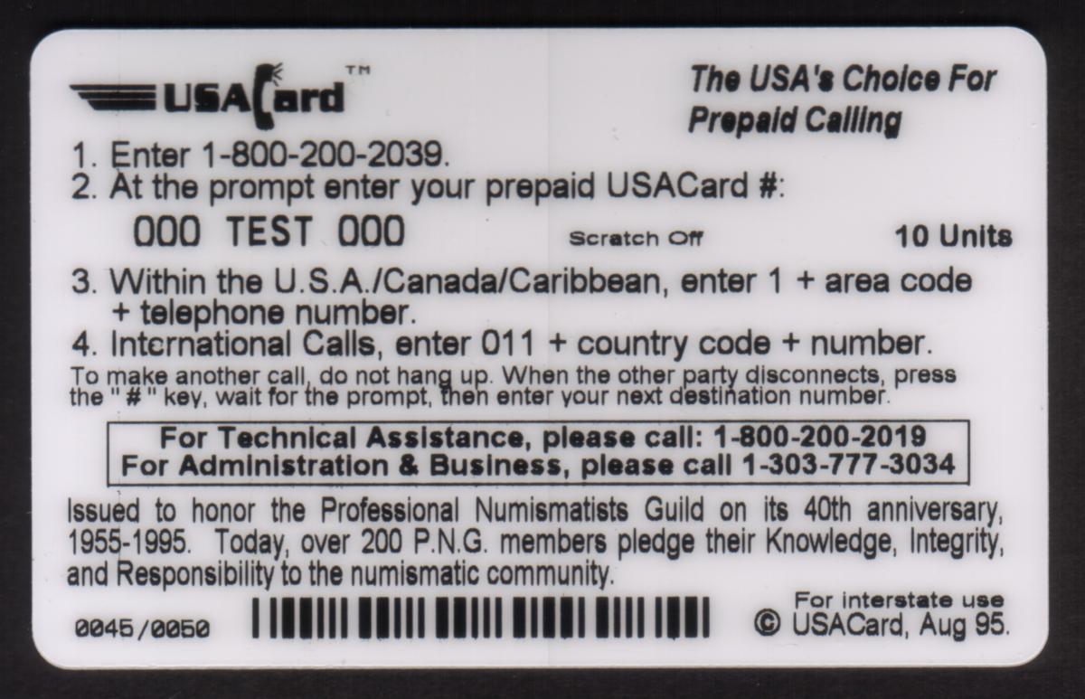Since we have the world's largest inventory of USA phonecards for collectors, you will not necessarily receive the identical serial/batch/PIN number that we have scanned/pictured.
