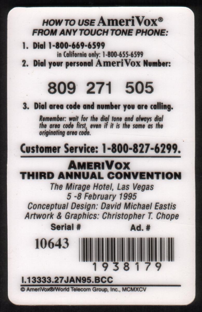 Since we have the world's largest inventory of USA phonecards for collectors, you will not necessarily receive the identical serial/batch/PIN number that we have scanned/pictured.