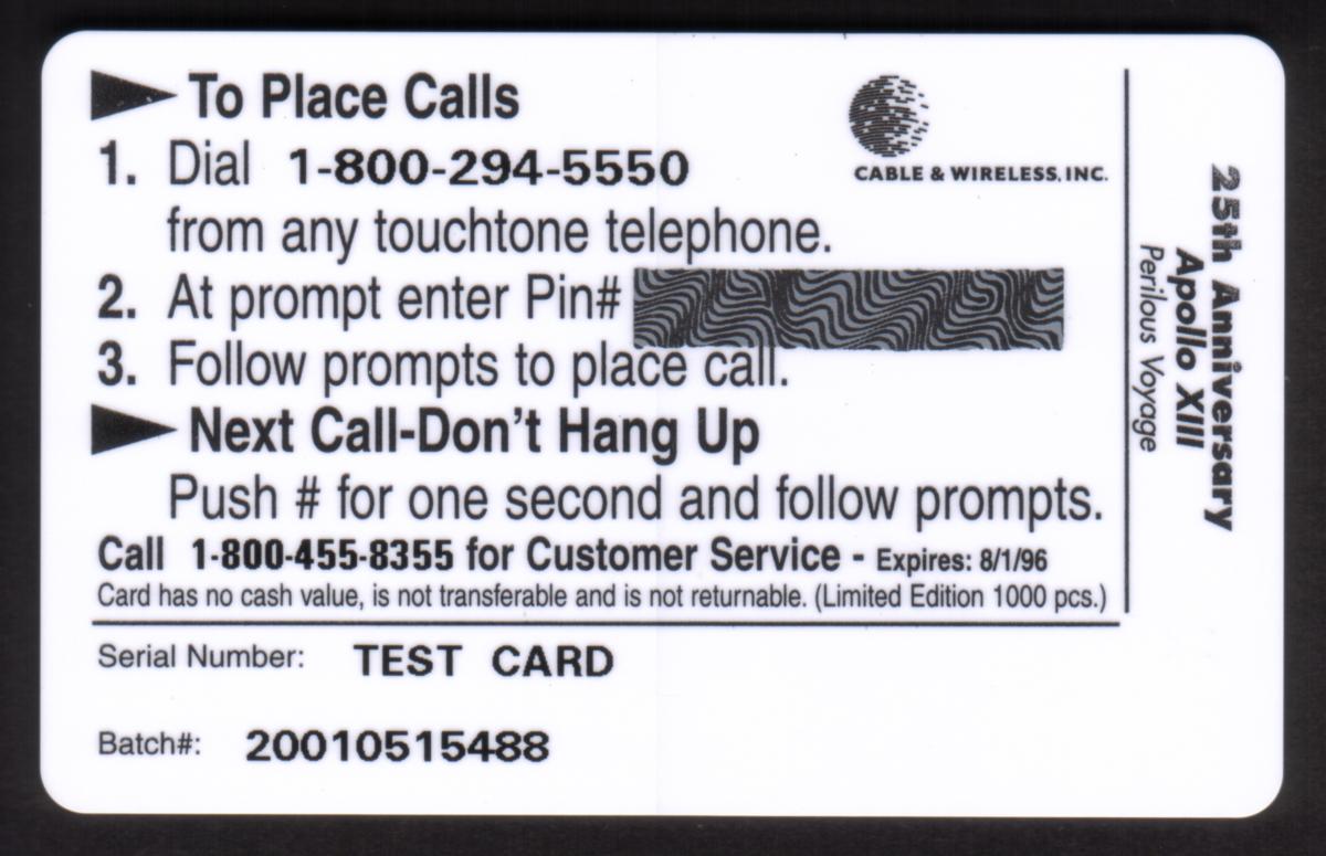 Since we have the world's largest inventory of USA phonecards for collectors, you will not necessarily receive the identical serial/batch/PIN number that we have scanned/pictured.