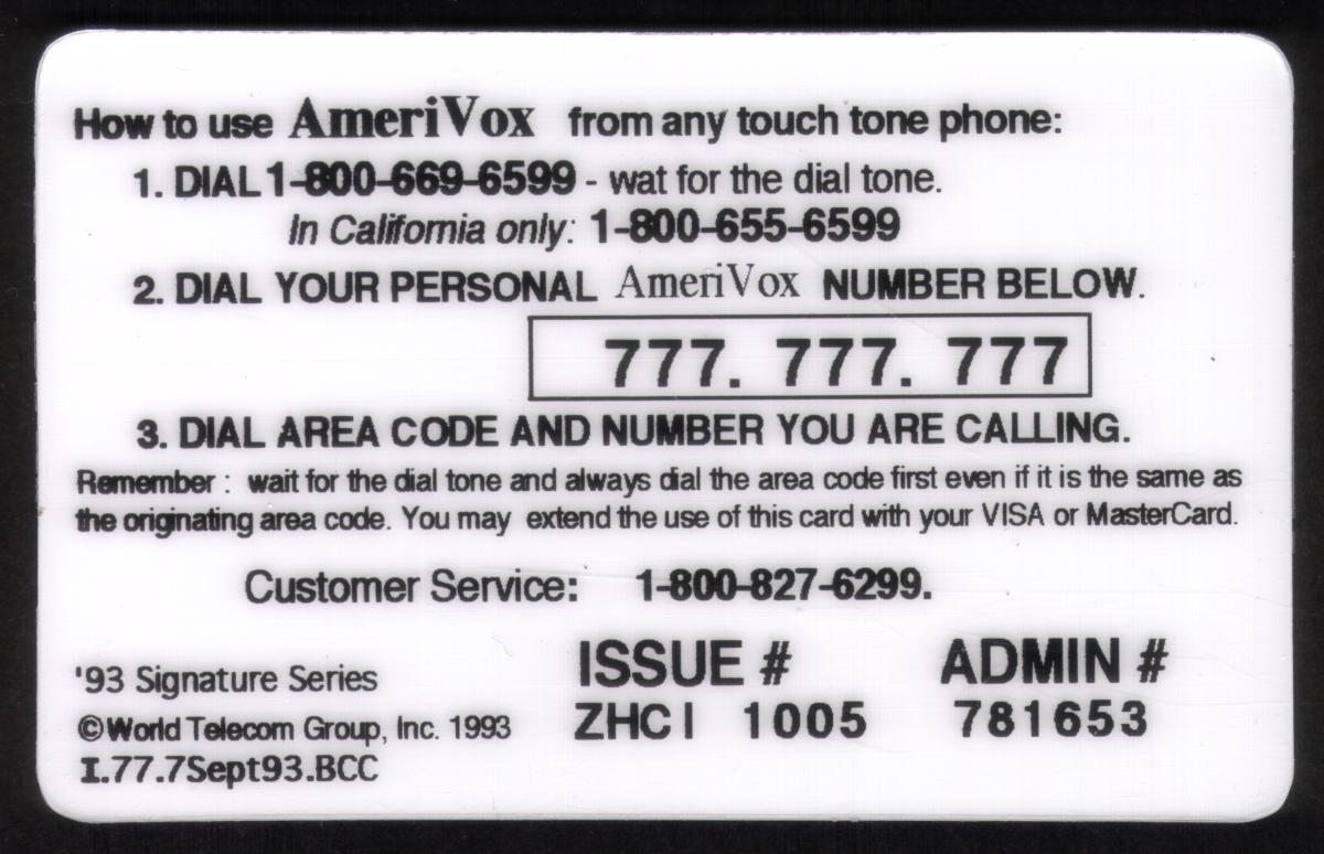 Since we have the world's largest inventory of USA phonecards for collectors, you will not necessarily receive the identical serial/batch/PIN number that we have scanned/pictured.