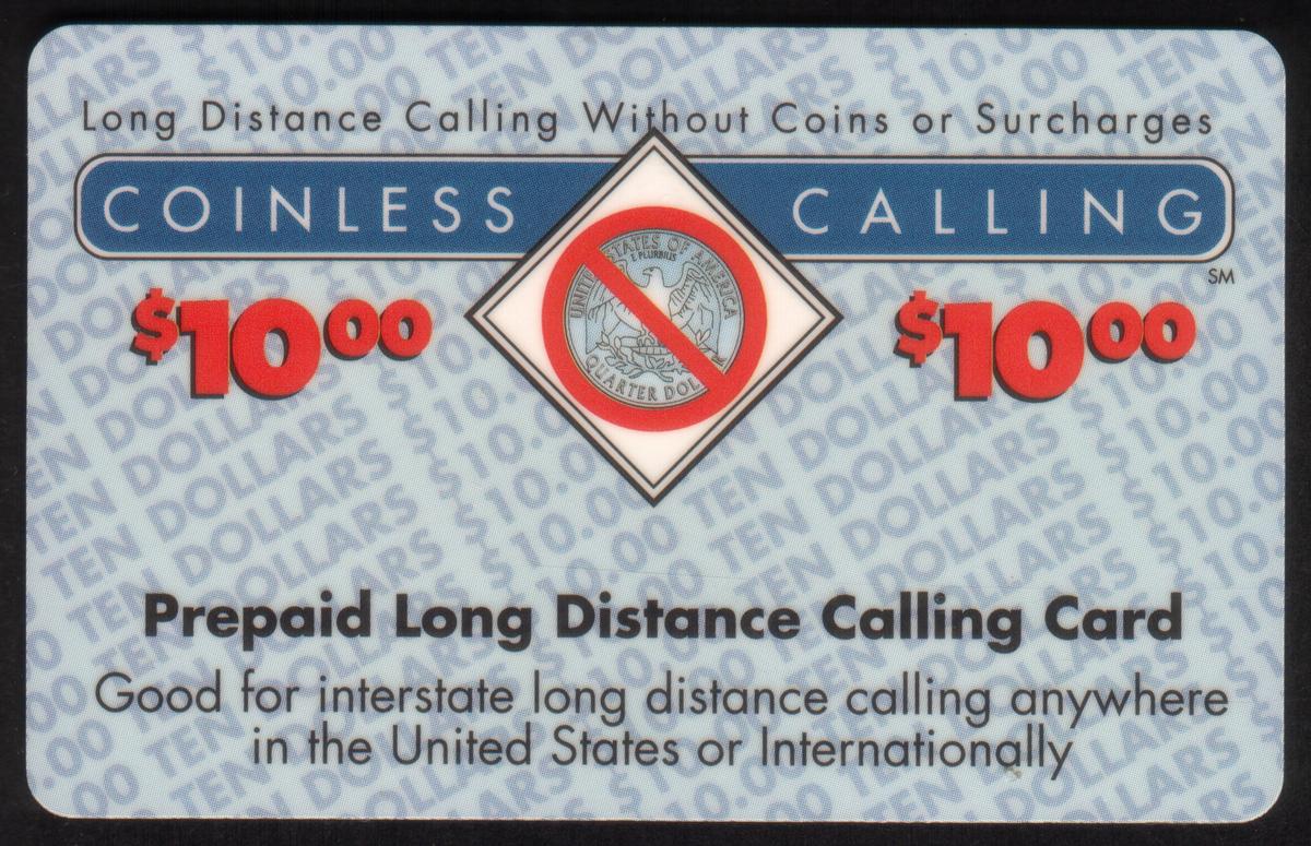 This collectible chip card is a prepaid long distance calling card issued by Century Telecommunications Inc. It carries a value of $10 and is designed for long distance calling without the use of coins or surcharges. The card prominently features the concept of "Coinless Calling," a service promoted by Century Telecommunications to enable convenient prepaid telephony.