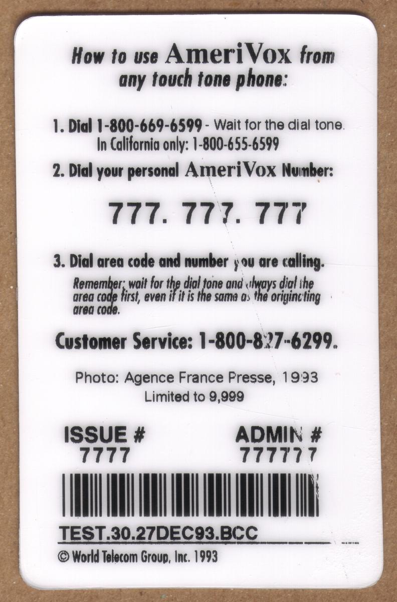 Since we have the world's largest inventory of USA phonecards for collectors, you will not necessarily receive the identical serial/batch/PIN number that we have scanned/pictured.