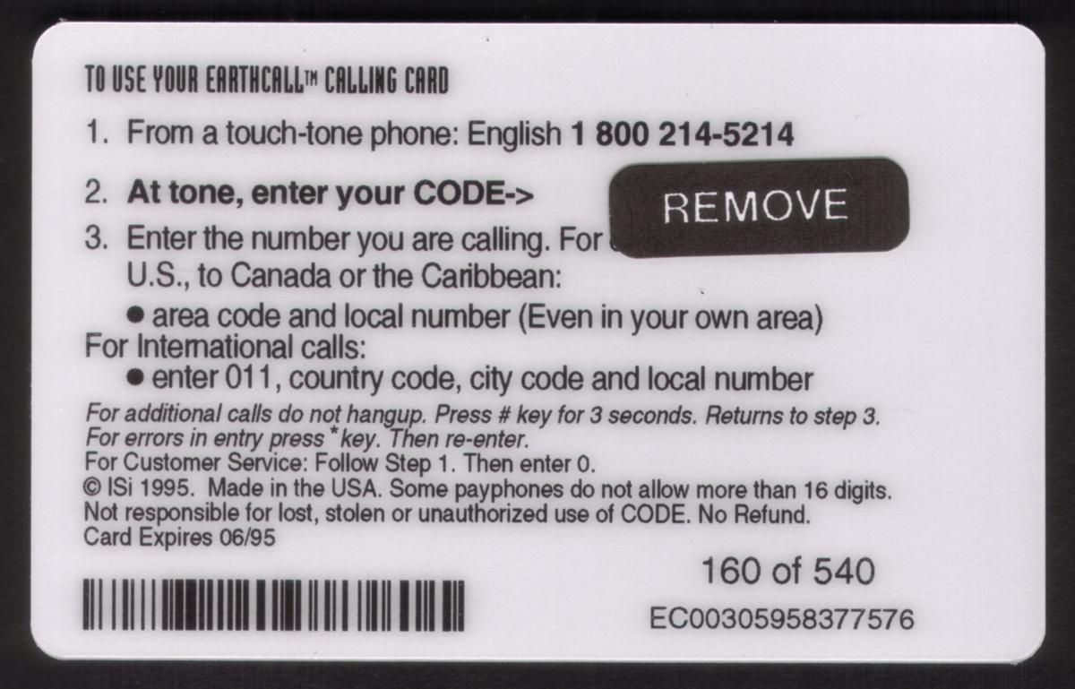 Since we have the world's largest inventory of USA phonecards for collectors, you will not necessarily receive the identical serial/batch/PIN number that we have scanned/pictured.
