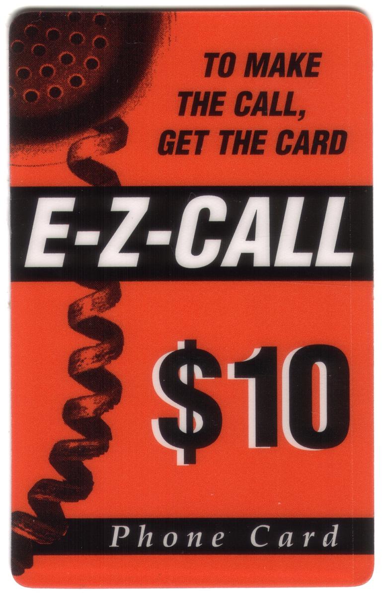 The collectible card features the generic user card design for E-Z-CALL, issued by DeltaCom. The front displays a large circular logo consisting of the letters “EZ” in white within a stylized blue and green gradient circle. Above and below the circle, the text “E-Z-CALL” and the phrase “To Make The Call, Get The Card” are printed in bold blue letters. The denomination of the card, "$10," is shown prominently in the upper left corner in white on a blue background.