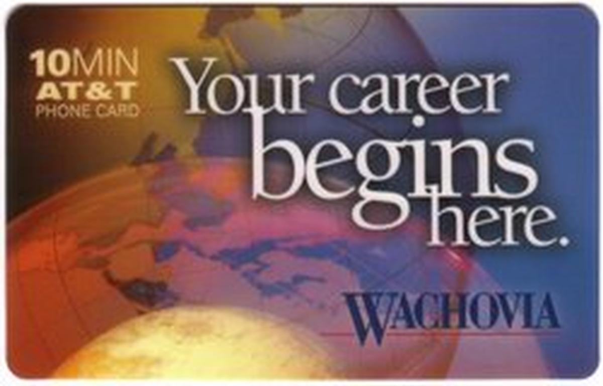 No names or additional graphics appear on the front aside from the company logos, the globe graphic, and the text elements. The card is clearly marked as a promotional collectible, combining branding from Wachovia Bank and AT&T with a visual focus on the globe and call time.