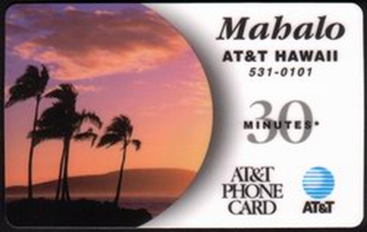 No additional logos or text apart from “AT&T,” “Hawaii,” and “30m Mahalo” appear on the front of the card. The layout is clean and balanced, with the business and promotional focus centered around the iconic Hawaiian imagery combined with AT&T’s corporate identity.