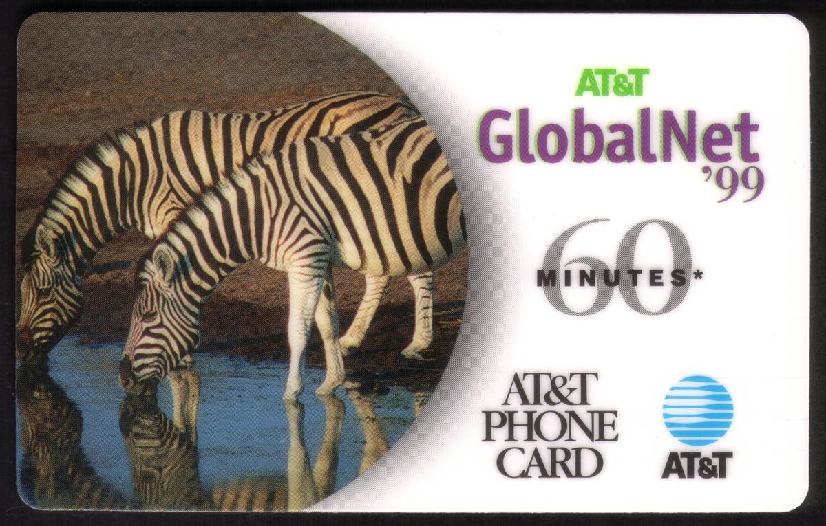 Overall, the card combines promotional and collectible aspects tied to AT&T's GlobalNet service from 1999, with a distinctive animal theme exemplified by the two zebras positioned on the left.