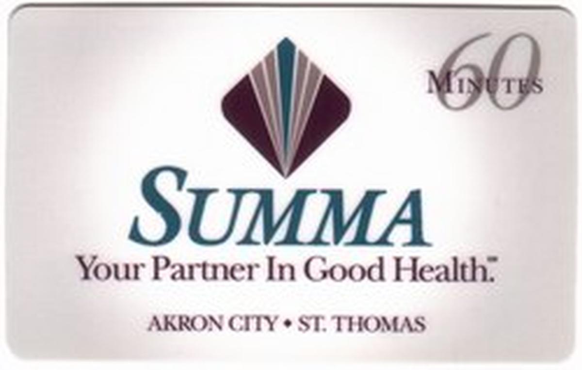 Overall, this phone card merges corporate branding with health care messaging, aligning Akron City, St. Thomas, and Summa under the umbrella of AT&T’s promotional efforts. The text and logos are displayed crisply, maintaining a formal and straightforward presentation suitable for collectors and enthusiasts interested in branded promotional phone cards.