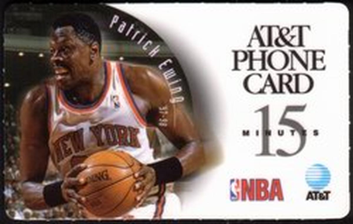 The design includes the NBA logo and the Gatorade branding, emphasizing its connection to the 1998 Gatorade promotional event. The card identifies Ewing with “New York” unmistakably linked to the Knicks franchise. AT&T’s logo is clearly visible, highlighting the sponsorship and collaboration for the promotion. The card is valued at 15M, which may indicate a promotional or usage denomination.