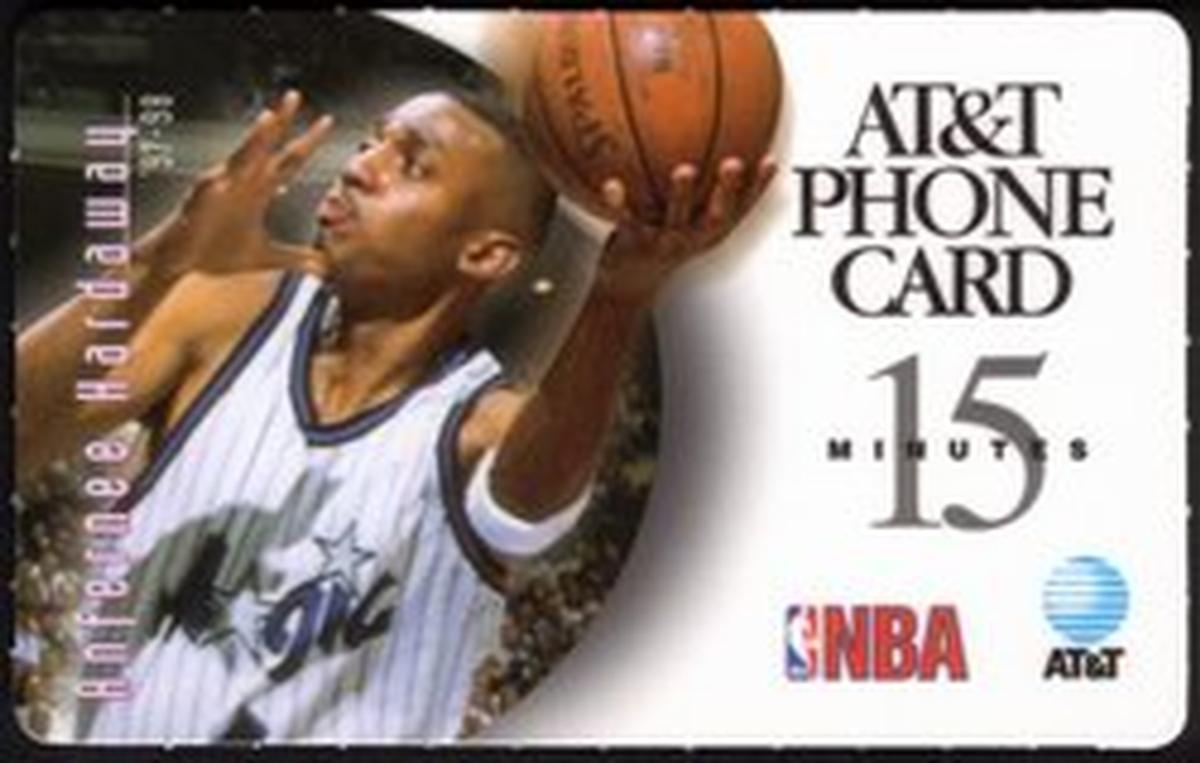 The overall design incorporates elements that connect the card to basketball and the NBA 1998 season, with clear branding from Gatorade, AT&T, and the Orlando Magic. This combination makes it a collectible phone card for basketball fans, especially those who followed the NBA and Anfernee Hardaway’s career in the late 1990s.