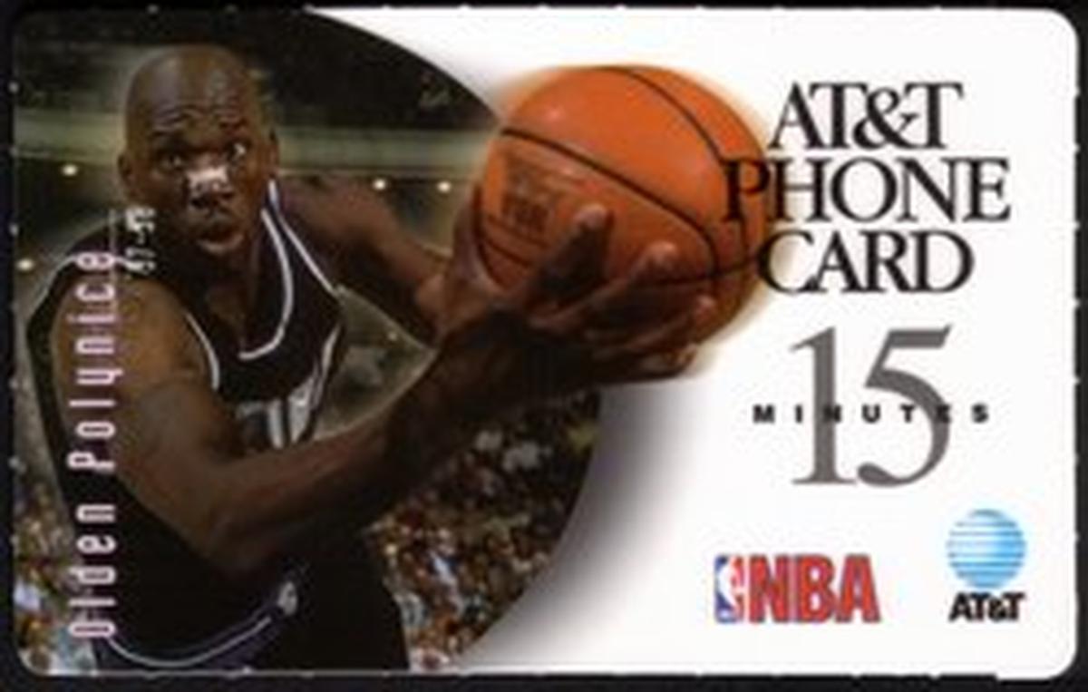This collectible card features Olden Polynice, a professional basketball player, depicted wearing the Sacramento Kings uniform. The card is from the 1998 NBA Gatorade Promo series and prominently includes branding from AT&T. The image shows Polynice in action on the basketball court, capturing a moment from his career in the National Basketball Association (NBA). The card is styled with a basketball theme consistent with the late 1990s, featuring clear and sharp photographic imagery.