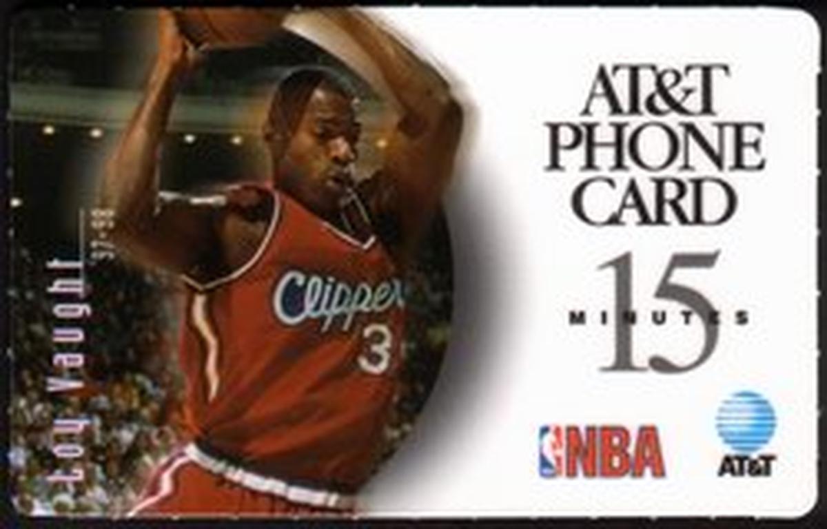 This collectible card features Loy Vaught, a professional basketball player, representing the Los Angeles Clippers in the National Basketball Association (NBA). The card is part of the 1998 Gatorade promotional series. The front of the card includes a clear image of Loy Vaught in action, wearing the Clippers’ uniform, with his name and team affiliation prominently displayed. The card also includes the Gatorade logo and the AT&T branding, reflecting its connection to both companies.