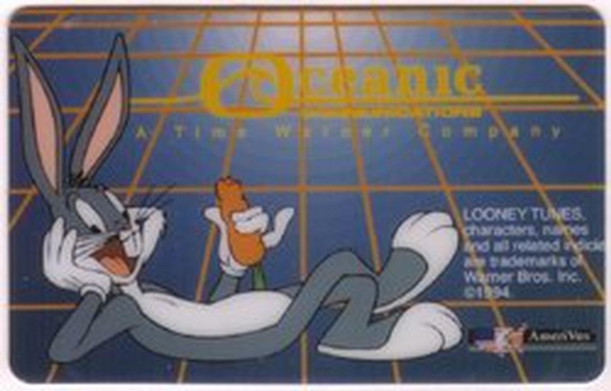 This card is part of a series of collectible phone cards distributed by Oceanic Communications, designed for collectors and fans of cartoon animation and comic strip characters. The prominent presence of Bugs Bunny establishes its connection to the well-known Looney Tunes franchise, made available through AmeriVox and Time Warner licensing agreements.