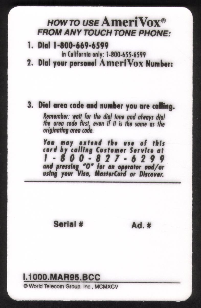 Since we have the world's largest inventory of USA phonecards for collectors, you will not necessarily receive the identical serial/batch/PIN number that we have scanned/pictured.