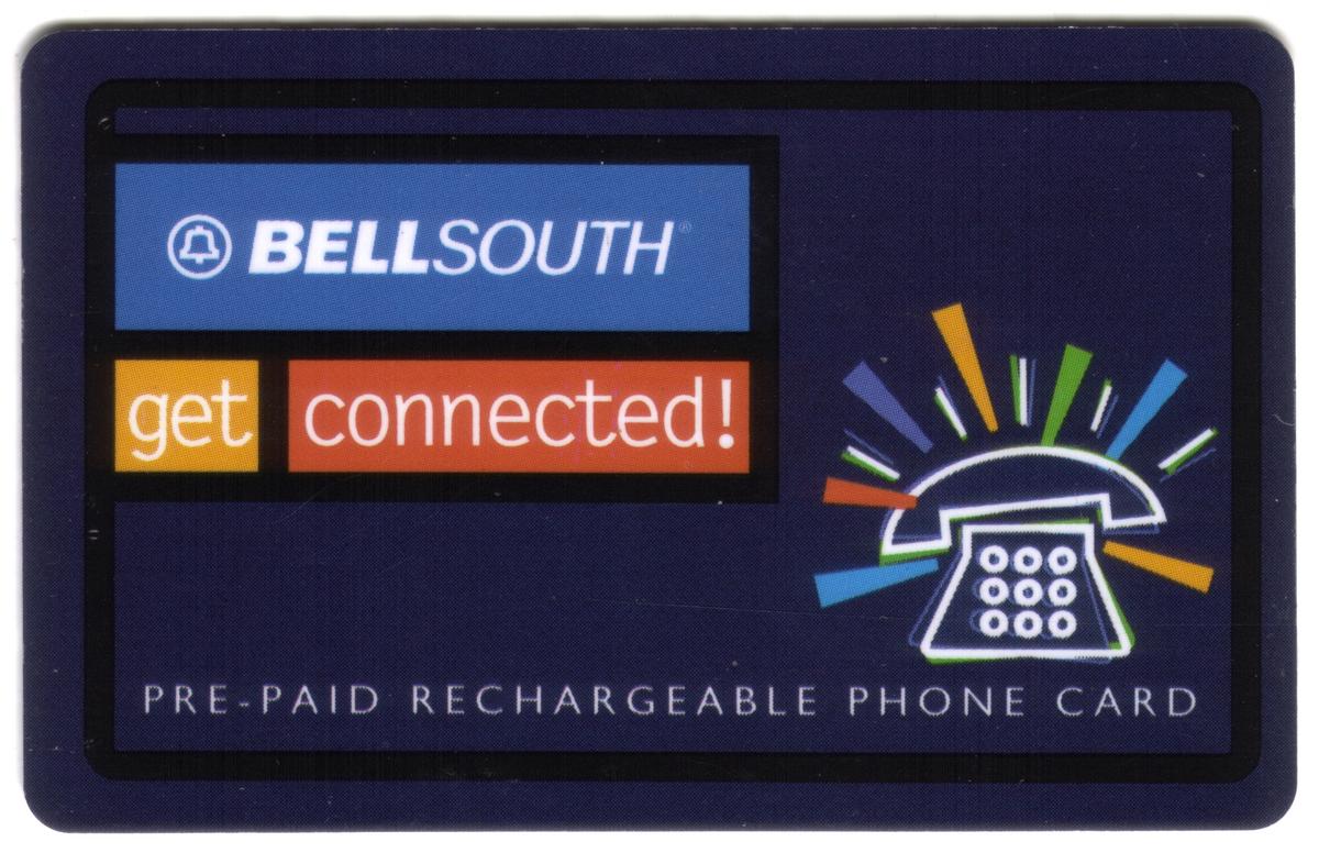 The card is serial numbered and marked as USED, which confirms its previously activated status. The overall presentation combines a clean layout with clear branding from BellSouth, making it a distinctive promotional piece from the telecommunications company. The artwork captures a visually appealing and colorful representation tied closely to the theme of telephones on phone cards.
