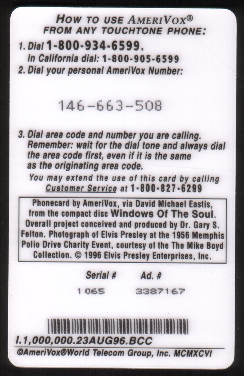 Since we have the world's largest inventory of USA phonecards for collectors, you will not necessarily receive the identical serial/batch/PIN number that we have scanned/pictured.