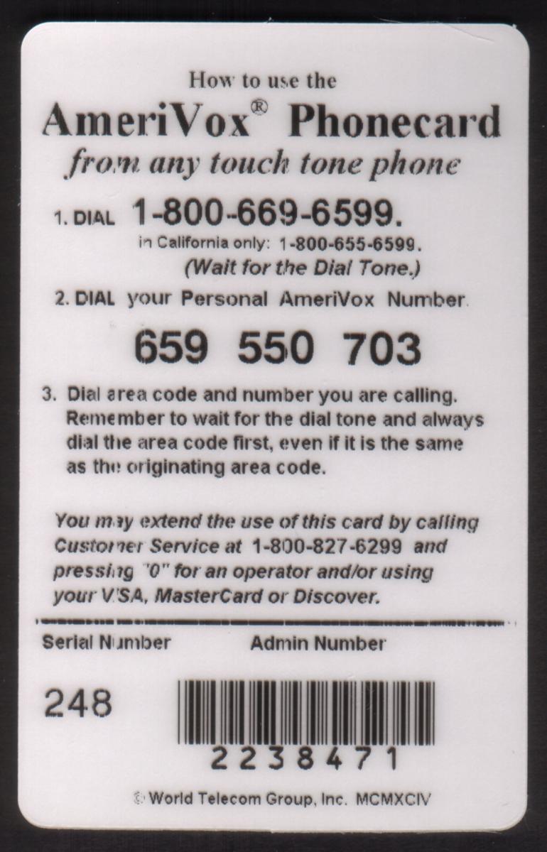 Since we have the world's largest inventory of USA phonecards for collectors, you will not necessarily receive the identical serial/batch/PIN number that we have scanned/pictured.