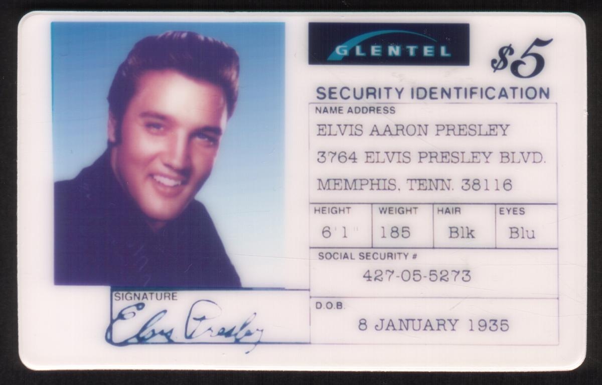 $5. Glentel: Elvis ID Card (Photo, Address, SS, Birth, Etc.) SPECIMEN