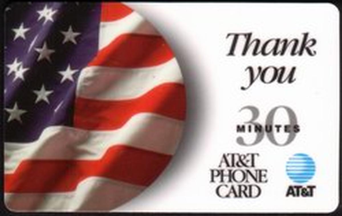 Overall, the card serves as a promotional item expressing thanks, combining national symbolism with a clear acknowledgment of appreciation. The AT&T branding marks it as a collectible piece from the American telecommunications company.
