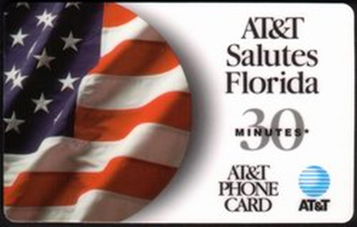 This card represents a promotional item issued by AT&T, associating the company with American pride and Florida. It measures 30 millimeters, aligning with standard collectible phone card sizes. The card’s presentation suggests it was produced for commemorative or promotional purposes rather than regular use.