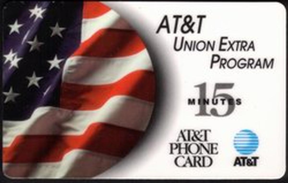 This card is a promotional item linked to AT&T, specifically under the "Union Extra Program." The clear, concise branding elements and patriotic imagery align closely with United States symbolism, reflecting the card’s country of origin.