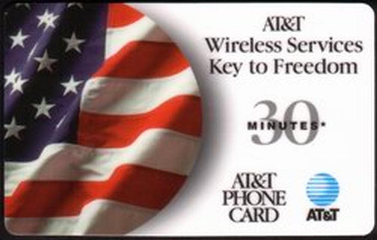 Overall, this card serves as a commemorative or promotional item by AT&T Wireless Services, combining patriotic imagery with functional phone card details. The focus on freedom and the American flag aligns with the branding and intended message of connectivity and liberty.