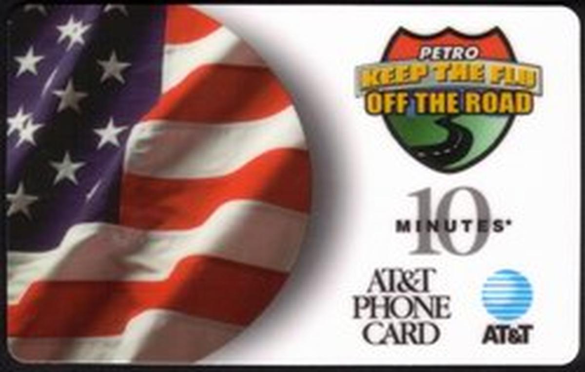 This card is a collectible phone card issued by AT&T. The patriotic theme combined with the business name and health-related slogan suggests it was part of a promotional campaign. The card’s focus on the American flag and the anti-flu message ties into a public health or awareness effort within the United States.
