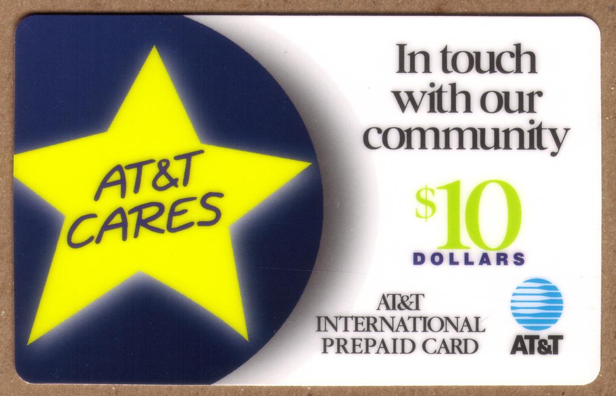 This card represents a promotional item issued by AT&T to emphasize community engagement. The overall style and layout emphasize the company’s commitment to customers and local connections through the "AT&T Cares" campaign.