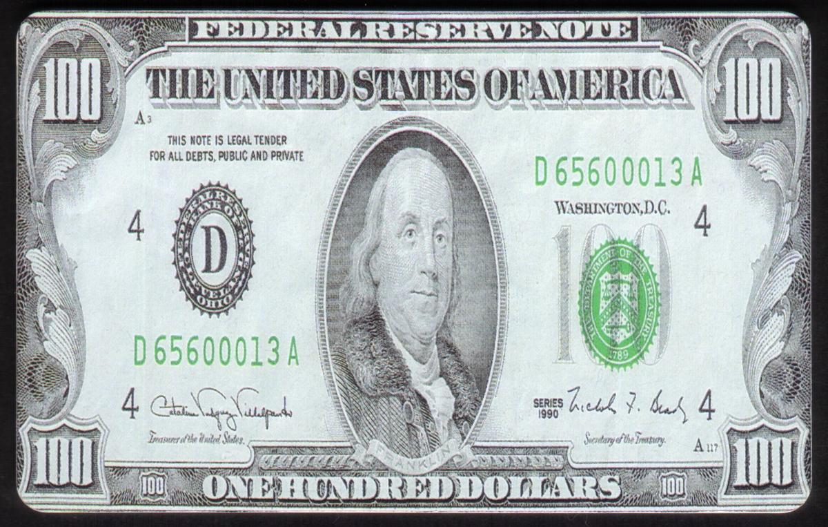 Complete set of US banknote images from $1 to $100, featuring historic figures, authentic details, serial numbers, seals, and signatures for collection. |