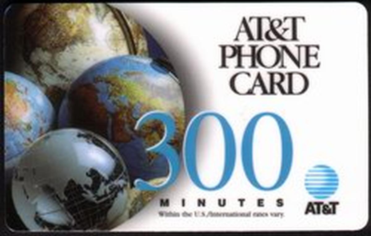 The overall style and design focus on global communication, consistent with the AT&T brand imagery. The card maintains a straightforward layout, balancing the visual impact of the globes with clear corporate identification and card value information.