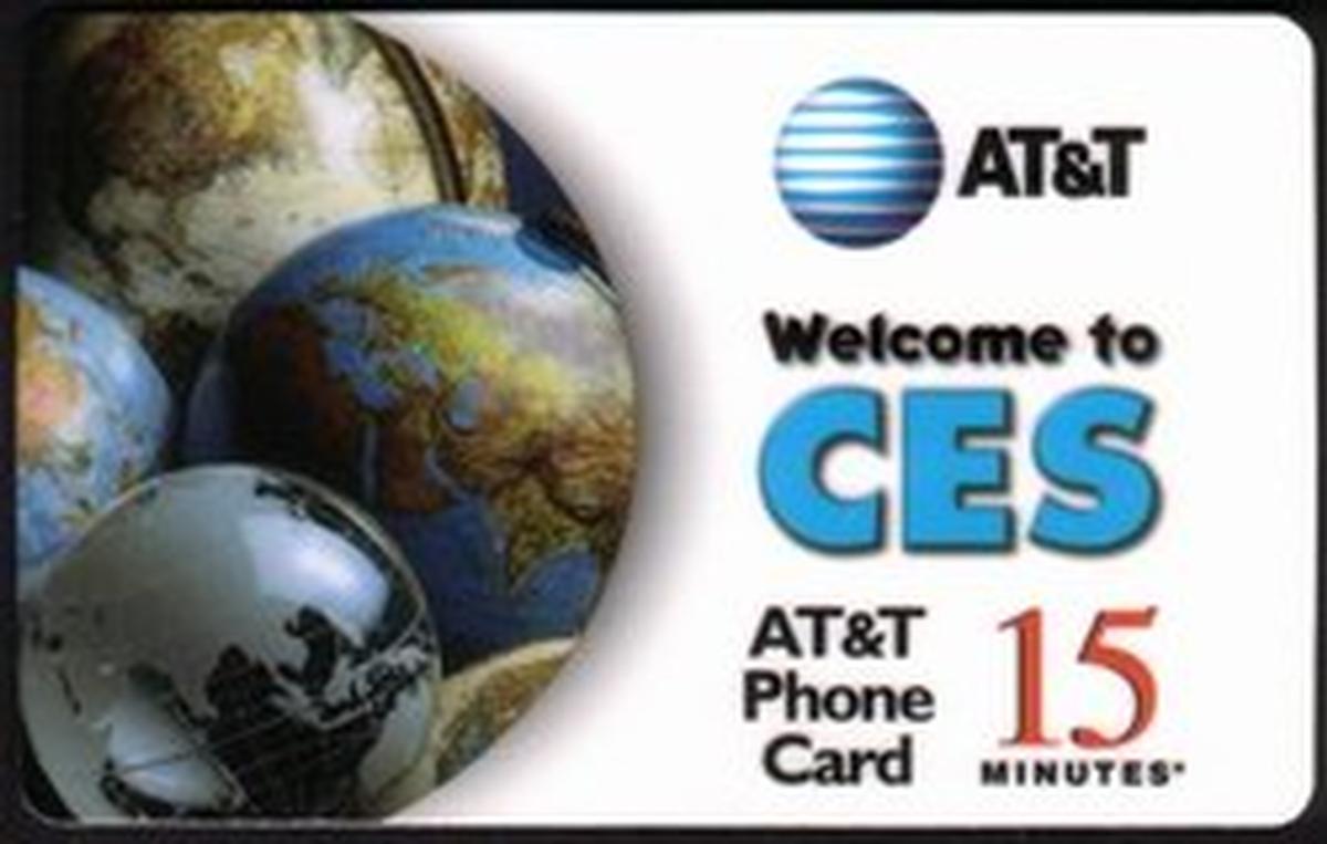 This card serves as a promotional collectible celebrating global communication and technology through the theme of world globes. The presence of all text and logos, including CES Corporation and AT&T, makes this item a notable piece for collectors interested in telecommunications and promotional phone cards.