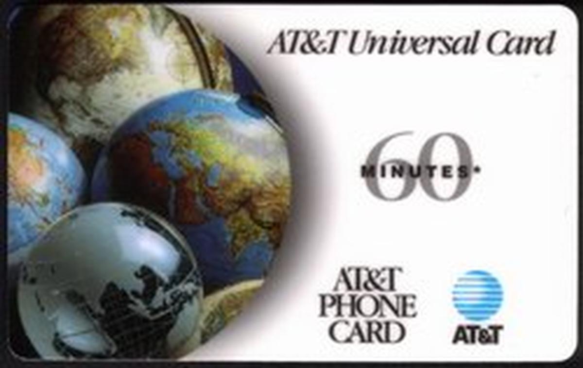 Overall, this promotional collectible card combines geographic imagery with corporate branding from AT&T and represents a specimen of their collectible "Universal Card" series related to world globes.