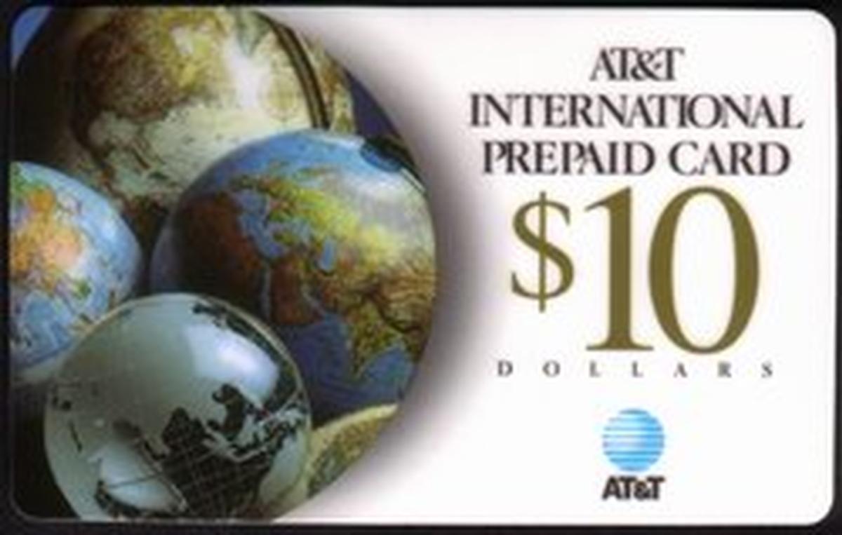 Overall, the card presents a clean and professional look focused on international connectivity through the use of the globe imagery and AT&T branding. The colors are vivid, especially the blue and green tones of the Earth, making the card visually appealing to collectors and users alike.