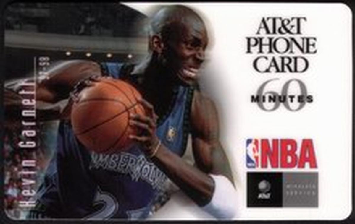 This collectible card is centered on sports and basketball, specifically featuring Kevin Garnett and the Minnesota Timberwolves during the 1998 NBA season. It combines sports imagery with corporate branding from AT&T Wireless, making it a distinct item for collectors interested in NBA memorabilia or basketball history from that year.