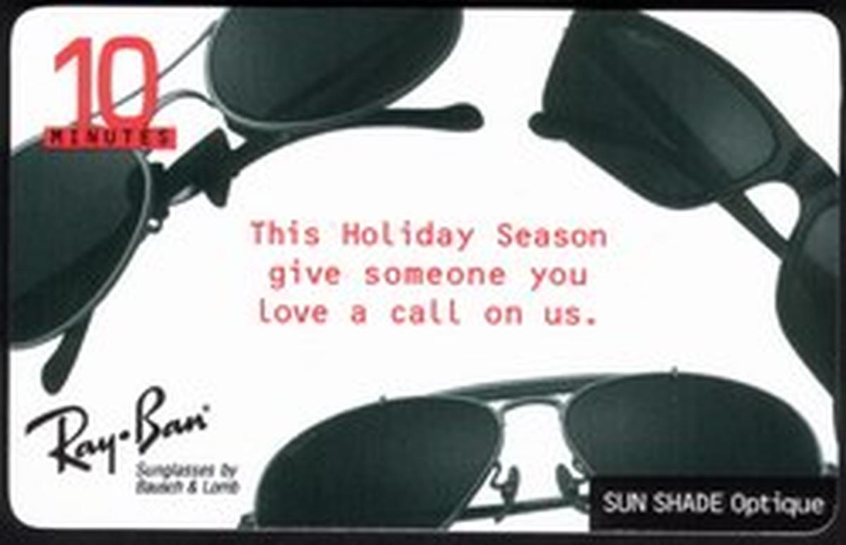 This collectible phone card ties Ray-Ban eyewear and AT&T telecommunication service under a seasonal message, making it a unique item for collectors interested in branded phone cards linked to major companies and holiday themes.