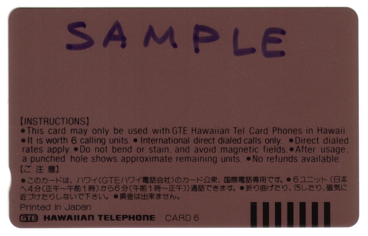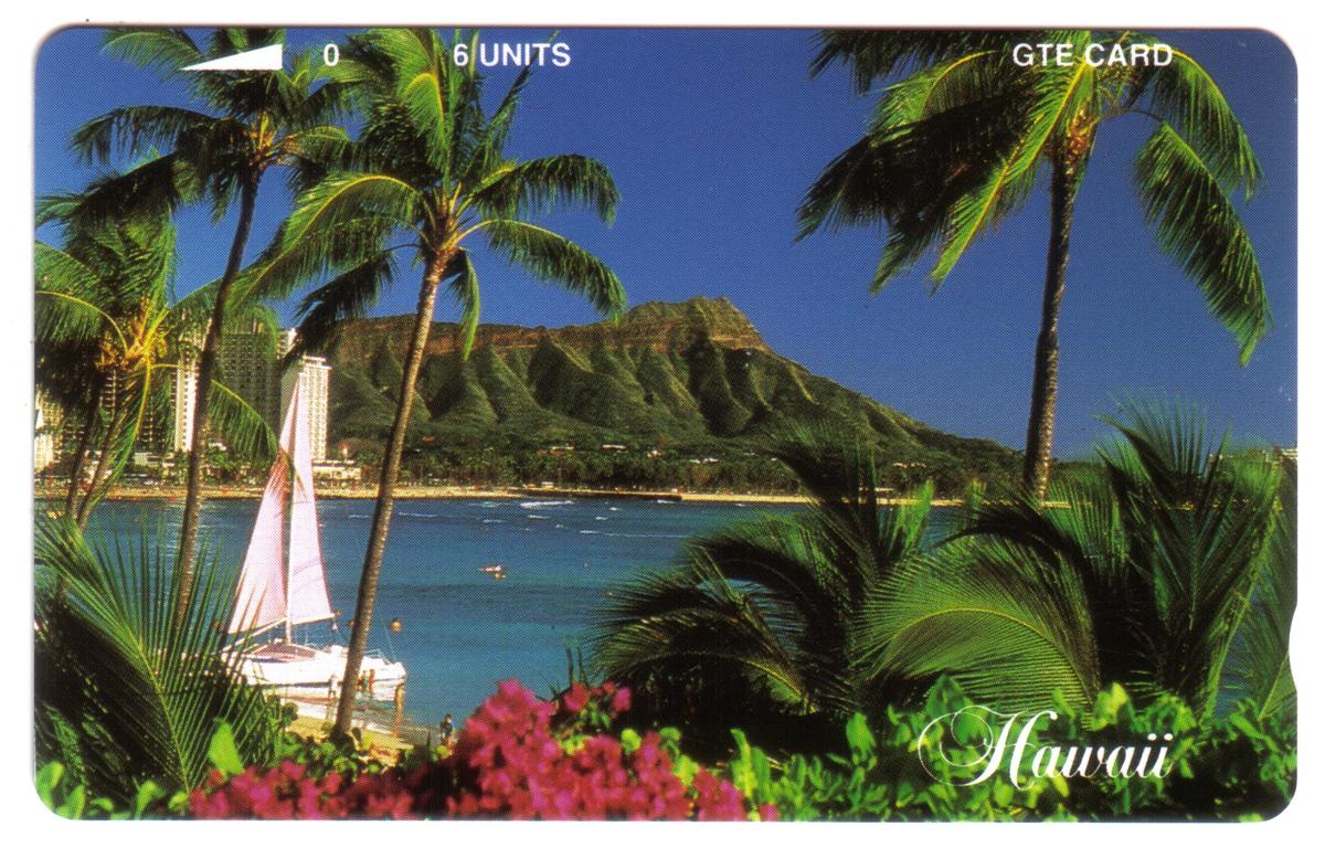 The word "Hawaii" is elegantly scripted in white text in the lower right corner of the card front. Along the top edge of the card, the text "0 6 UNITS" and "GTE CARD" appear in white. This phone card is part of a Hawaiian scenic series capturing the natural beauty and popular travel destinations in the Hawaiian Islands.